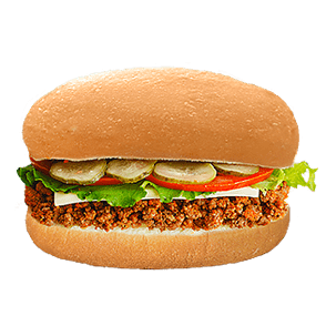 Булочка, белый соус, салатный лист, куриное филе, томаты, огурчики, сыр