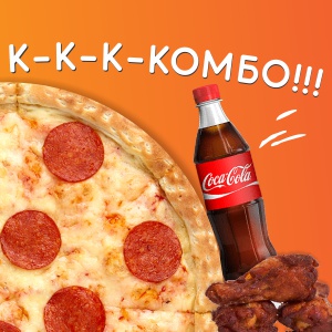 Пицца Пепперони 25 см, Куриные крылышки 3 шт., Coca Cola 0,5 л3500