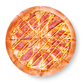 НовинкаТоматный соус, моцарелла, ветчина куриная, сырный соус
