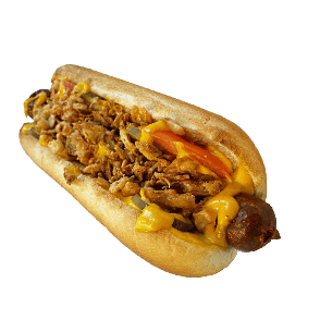 ОстроСосиска с пшеничной булочкой с добавлением поджаренного лука, томатов, маринованных огурчиков и халапеньо1550