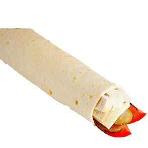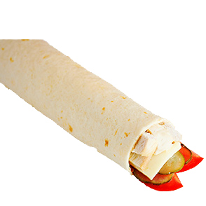 Пшеничная тортилья, белый соус, куриное филе, томаты, огурчики, сыр