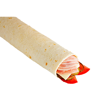 Пшеничная тортилья, белый соус, ветчина куриная, томаты, огурчики, сыр
