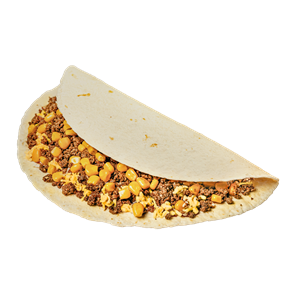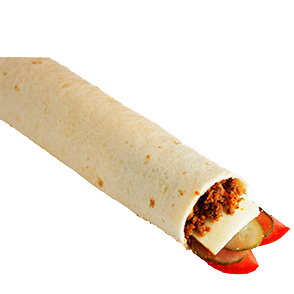 Пшеничная тортилья, белый соус, говяжий фарш, томаты, огурчики, сыр
