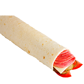 Пшеничная тортилья, белый соус, салями говяжья, томаты, огурчики, сыр