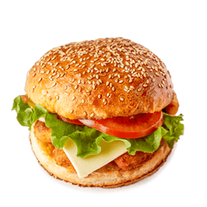 НовинкаБулочка с кунжутом, соус гриль, фиолетовый лук, салатный лист, куриная котлета, томаты, огурчики, сыр