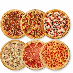 6 Супер Хитовых Пицц 32 см: Мясная, Чизбургер, Ассорти, Грибная, Салями, Маргарита19200