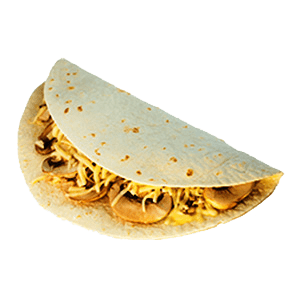 Сложенная вдвое пшеничная лепешка с курочкой и шампиньонами, залитая нежным сыром. Запекается в печи