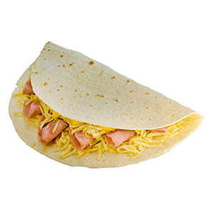 Сложенная вдвое пшеничная лепешка с ветчиной, залитая нежным сыром. Запекается в печи