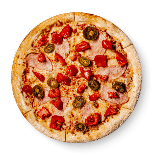 ОстроТоматный соус, моцарелла, ветчина куриная, острые перчики халапеньо, томаты