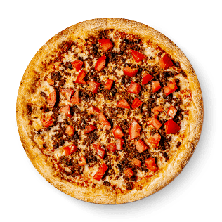 Хит продажТоматный соус, моцарелла, говяжий фарш, томаты