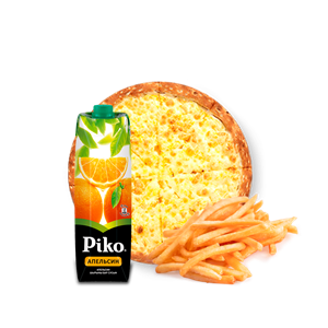 Пицца Сырная 32 см, картофель фри бол., сок Pico 1 л.5000