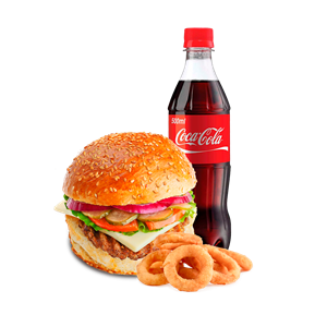 Бургер Лук & Мясо, луковые кольца 5 шт, Coca Cola 0,5 л3350