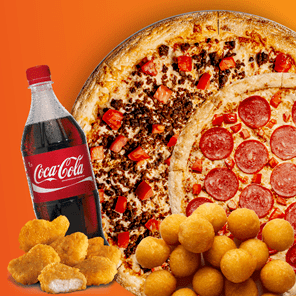 НовинкаПицца Салями 32 см, пицца Мясная 32 см, Картофельные шарики, куриные наггетсы 8 шт, Coca Cola 1 л10250