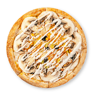 Грибной соус, моцарелла, ветчина куриная, шампиньоны